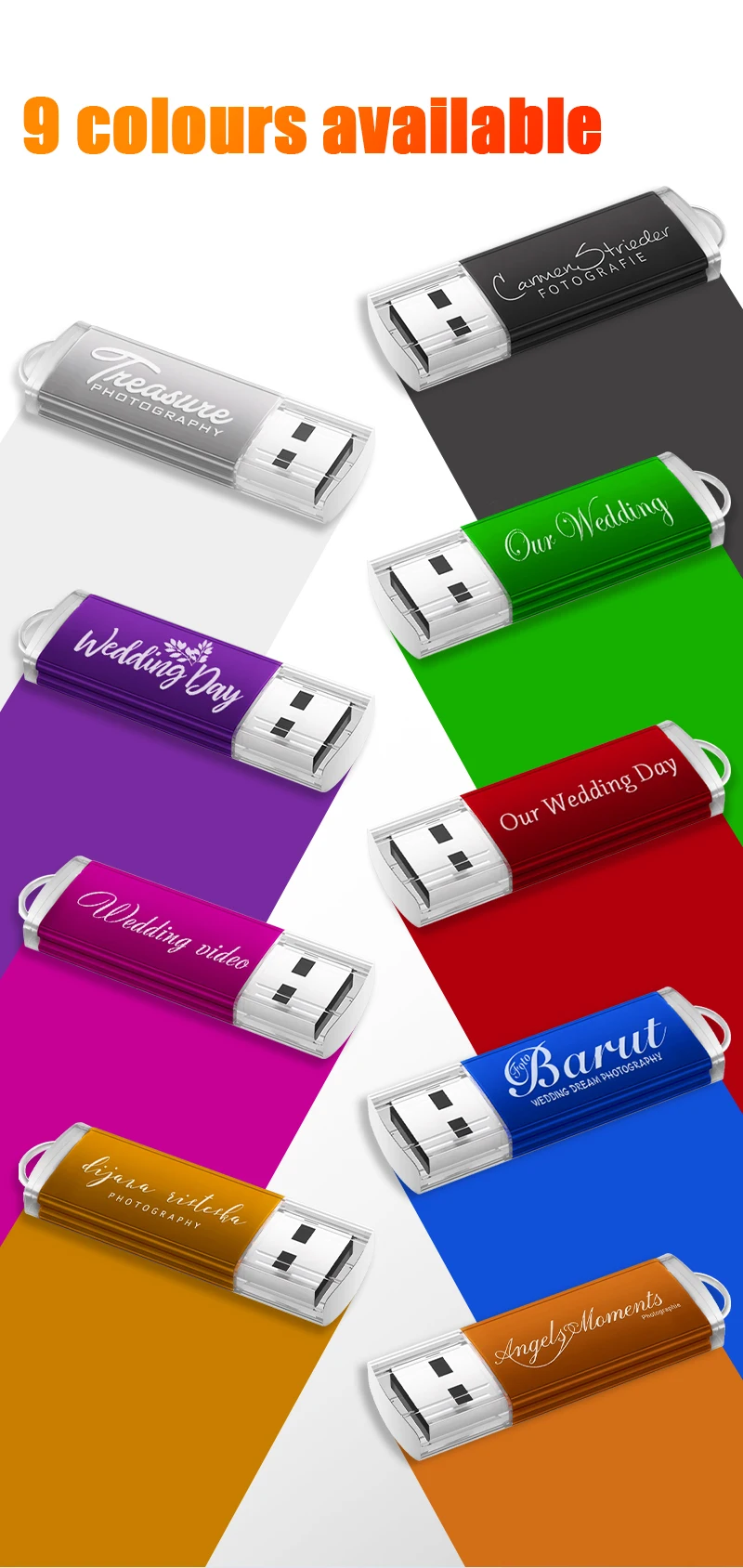 100PCS/lot Colour USB Flash Drive Wholesale 4GB 8GB 16GB 32GB Memory Stick Pendrive 64GB 128GB USB Stick Flash Disk Free Laser