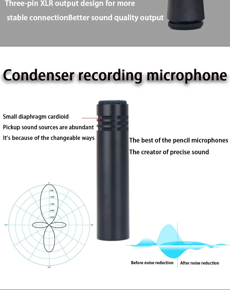 With its cardioid polar pattern, this microphone focuses on capturing sound from the front while rejecting unwanted noise from the sides and rear.