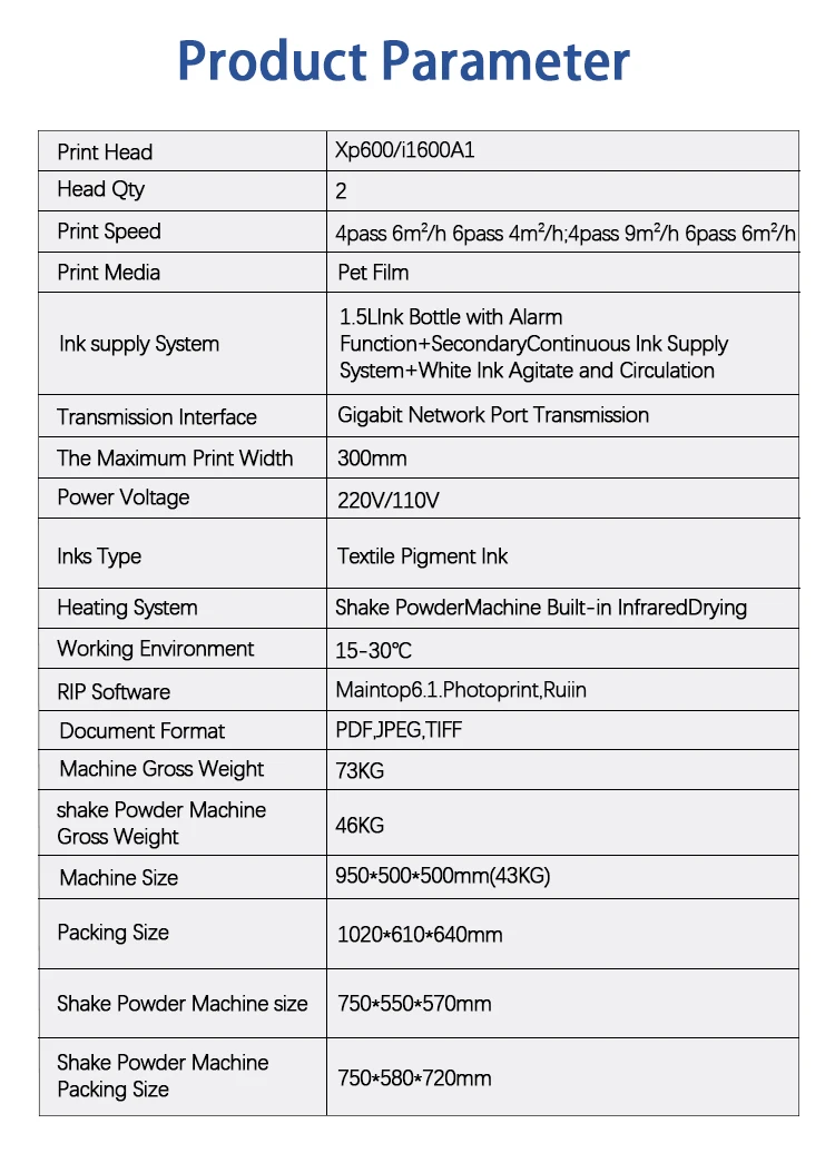 | 30cm DTF dual i1600 • China Mainland • EU Plug | 200001168:193#30cm DTF dual i1600;200007763:201336100;200009209:201447604 | $ 3222.41 | — |