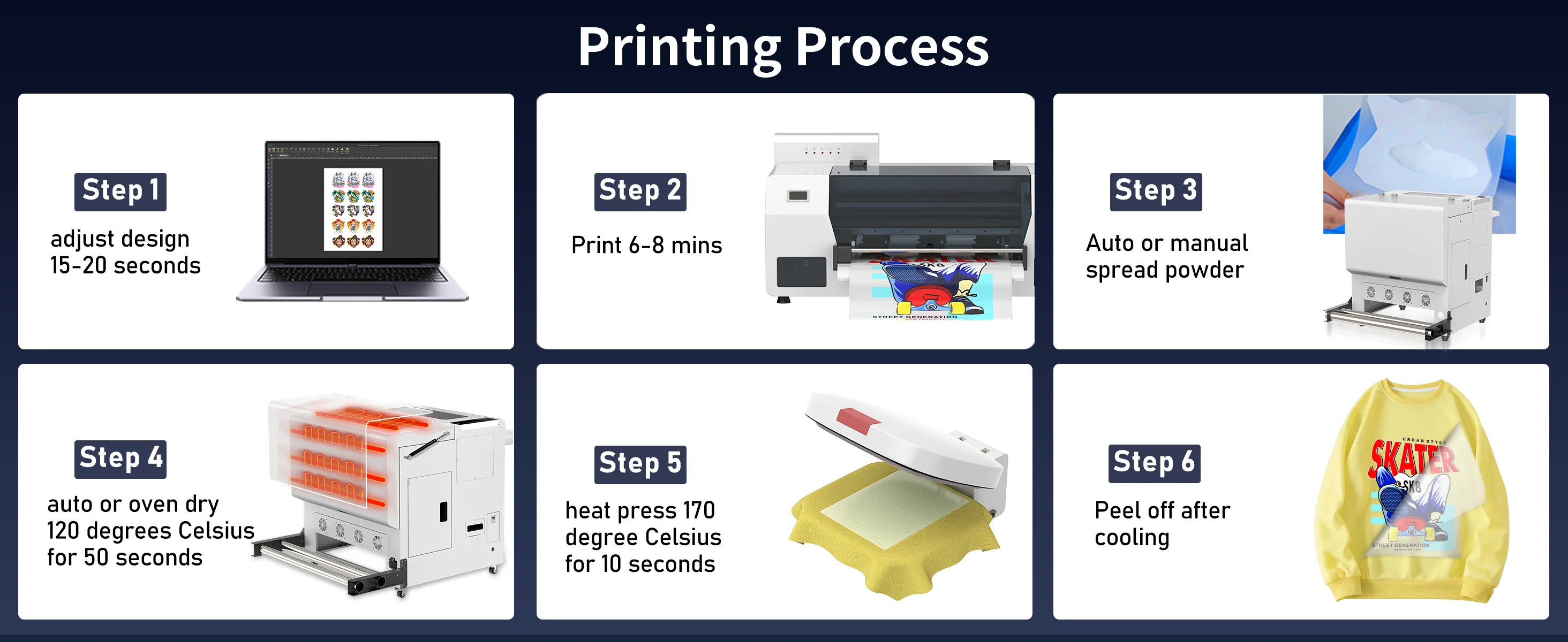 | Application | For Commercial,A3 DTF Printer For T shirt Hoodies Jeans caps all fabric A3 DTF Printer |