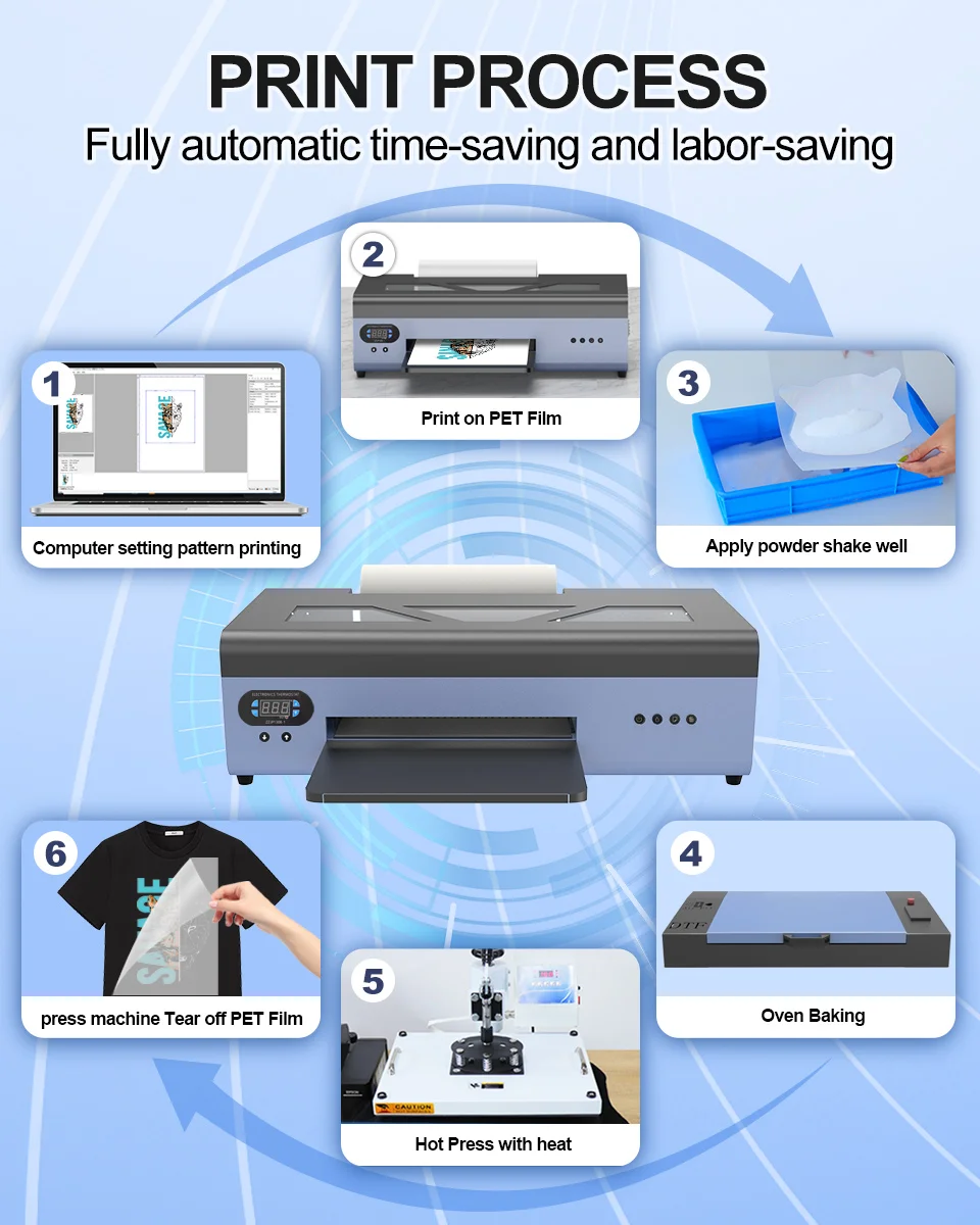 | Features | A3 DTF Printer,Desktop DTF Printer,DTF Transfer Film Printer,DTF Printer for Small Business,DTF Printer for Custom T-shirts,T-shirt Printing Machine,Custom Apparel Printer,Textile Printing Equipment,Garment Printing Machine |