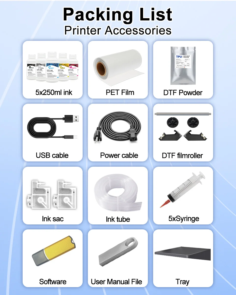 DTF Printers Have A 1-Year Warranty On Non-Consumable Parts And. We Have A Professional After-Sales Technical Support Team, If You Encounter Any Problems During The Installation And Printing Process, You Will Be Supported By Professional Engineers Within 24 Hours